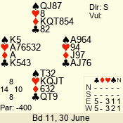 | 3 NT | E | +1 | -630 | 3 | 05 - 11 | 6 | 5 |