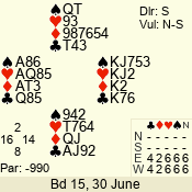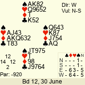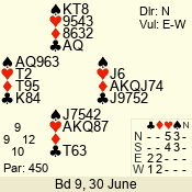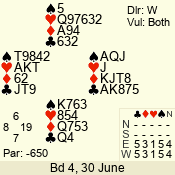 | 3 NT | W | +1 | -430 | 3 | 07 - 02 | 6 | 7 |