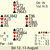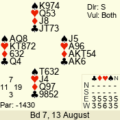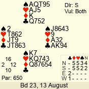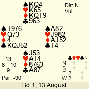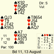 | 3 NT | S | +1 | 430 | 3 | 02 - 02 | 1 | 2 |