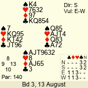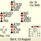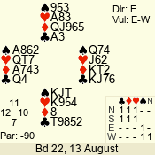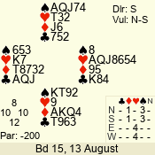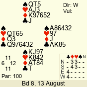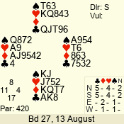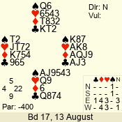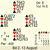 | 3 NT | E | +2 | -460 | 4 | 08 - 08 | 1 | 8 |