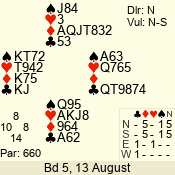 | 3 NT | S | +3 | 490 | 2 | 08 - 05 | 4 | 8 |