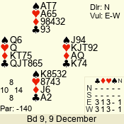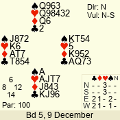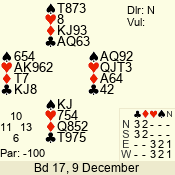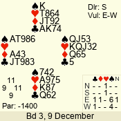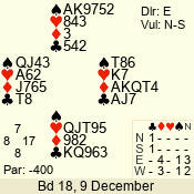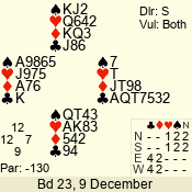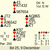 | 3 NT | S | -4 | -200 | 6 | 05 - 08 | 13 | 5 |