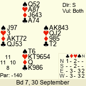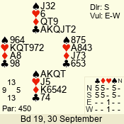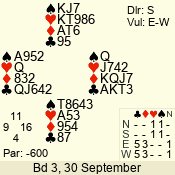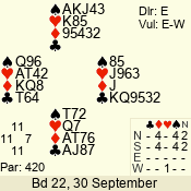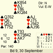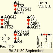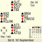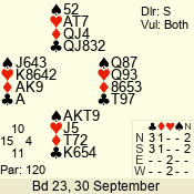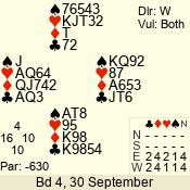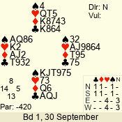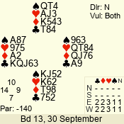 | 3 NT | S | +1 | 430 | 8 | 08 - 05 | 4 | 8 |