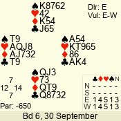 | 3 NT | E | +1 | -630 | 8 | 01 - 02 | 10 | 1 |