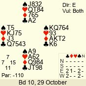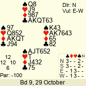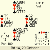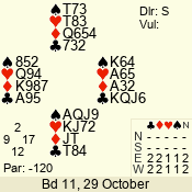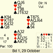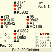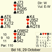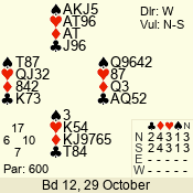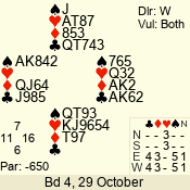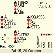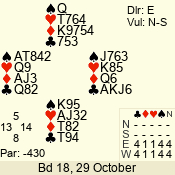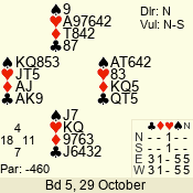| 3 NT | E | +1 | -430 | 9 | 07 - 04 | 4 | 7 |