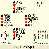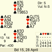 | 3 NT | S | +1 | 430 | 5 | 08 - 06 | 3 | 8 |