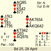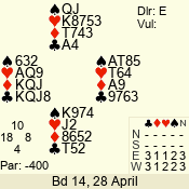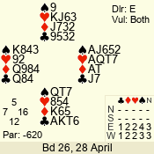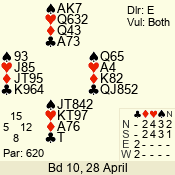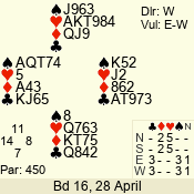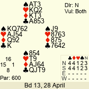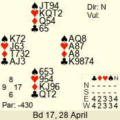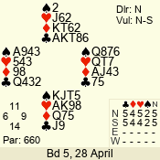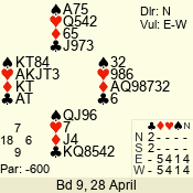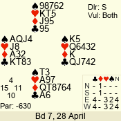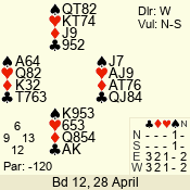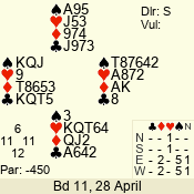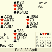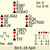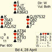 | 3 NT | W | +1 | -630 | 5 | 04 - 04 | 1 | 4 |