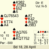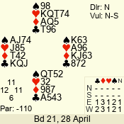 | 3 NT | W | +1 | -630 | 5 | 03 - 02 | 2 | 3 |