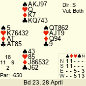 | 3 NT | W | +1 | -630 | J | 06 - 06 | 12 | 6 |