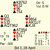 | 3 NT | S | -3 | -300 | 3 | 05 - 05 | 12 | 5 |