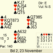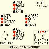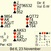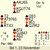 | 3 NT | E | +1 | -630 | 2 | 02 - 06 | 6 | 2 |