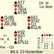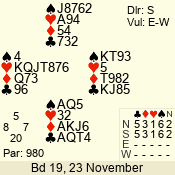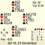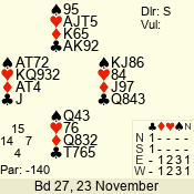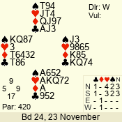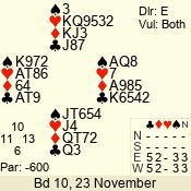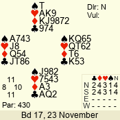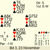 | 3 NT | S | +1 | 430 | 6 | 03 - 03 | 1 | 3 |