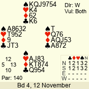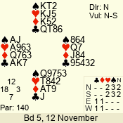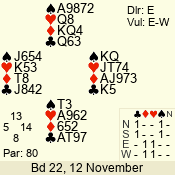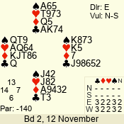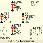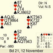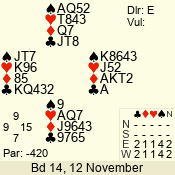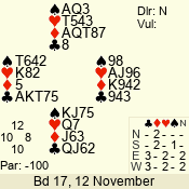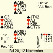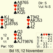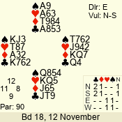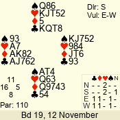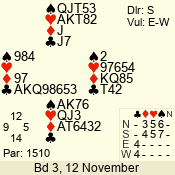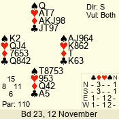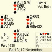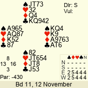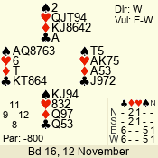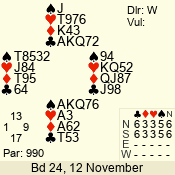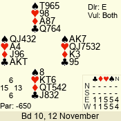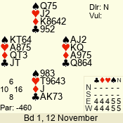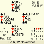 | 3 NT | E | +1 | -430 | A | 06 - 04 | 3 | 6 |