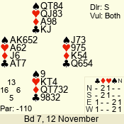 | 3 NT | E | +1 | -430 | A | 07 - 06 | 2 | 7 |