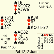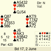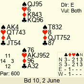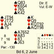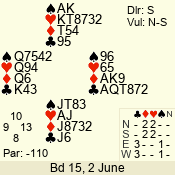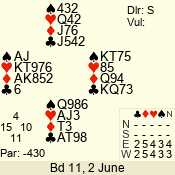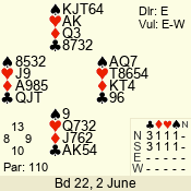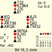 | 3 NT | E | +1 | -430 | 5 | 01 - 02 | 4 | 1 |