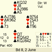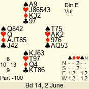| 3 NT | E | +1 | -430 | 8 | 04 - 03 | 2 | 4 |