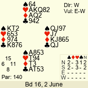 | Con | Dc | Res | Score | Ld | Pairs | Rd | Tbl | 2  | S | +1 | 140 | T | 03 - 04 | 4 | 3 |