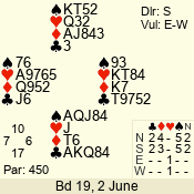 | Con | Dc | Res | Score | Ld | Pairs | Rd | Tbl | 4  | S | +1 | 450 | 5 | 04 - 01 | 4 | 4 |