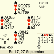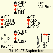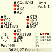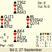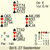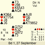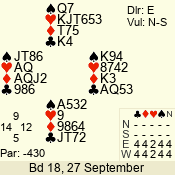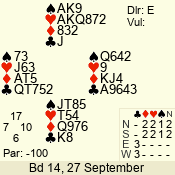 | 3 NT | E | +1 | -430 | 2 | 09 - 02 | 12 | 9 |