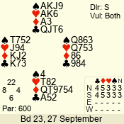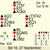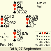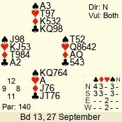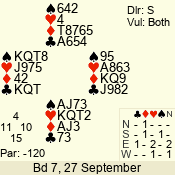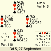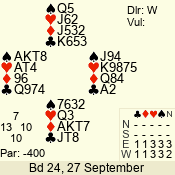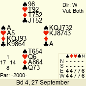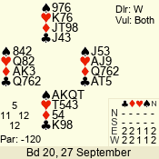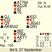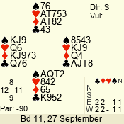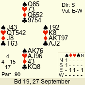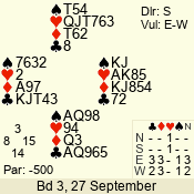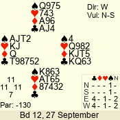 | 3 NT | W | +3 | -690 | 2 | 09 - 05 | 5 | 9 |