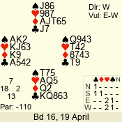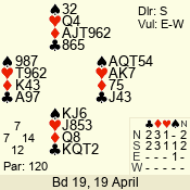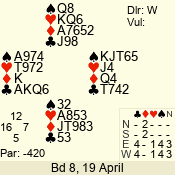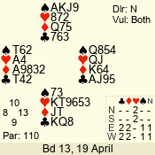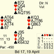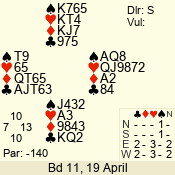 | 3 NT | S | +1 | 430 | J | 05 - 08 | 11 | 5 |