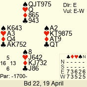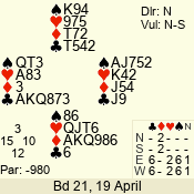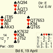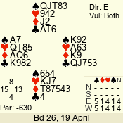 | 3 NT | E | +1 | -630 | 5 | 12 - 11 | 2 | 12 |