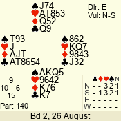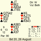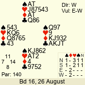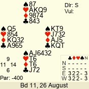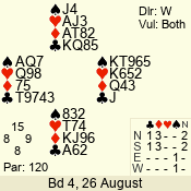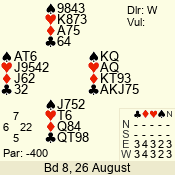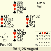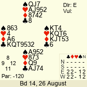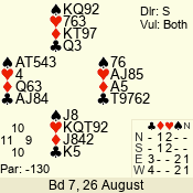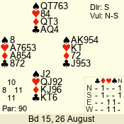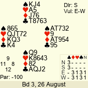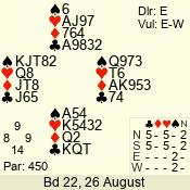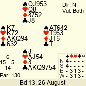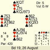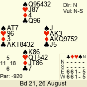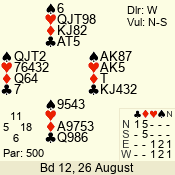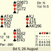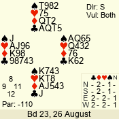 | 3 NT | S | +1 | 430 | 4 | 08 - 06 | 3 | 8 |