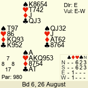 | 3 NT | E | +1 | -430 | 2 | 06 - 08 | 7 | 6 |
