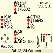 | 3 NT | W | +4 | -520 | 4 | 01 - 01 | 1 | 1 |