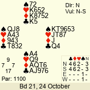 | 3 NT | W | +2 | -460 | 5 | 01 - 05 | 9 | 1 |