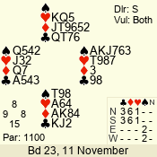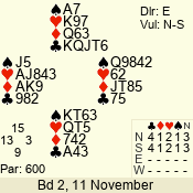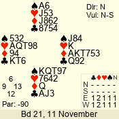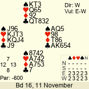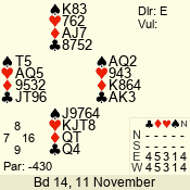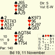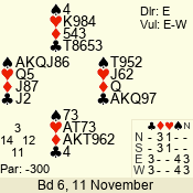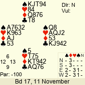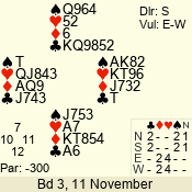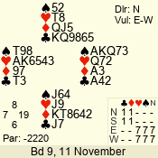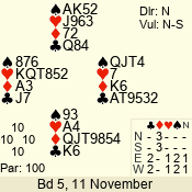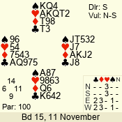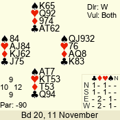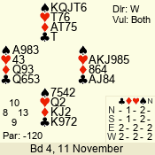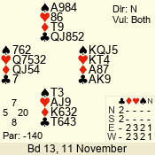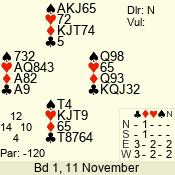 | 3 NT | W | +1 | -630 | 3 | 05 - 02 | 4 | 5 |