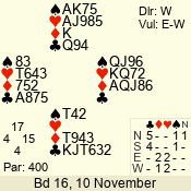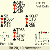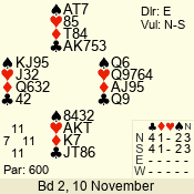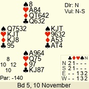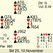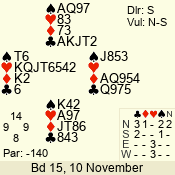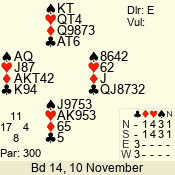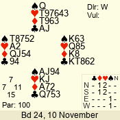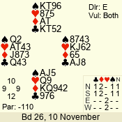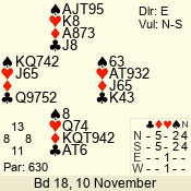 | 3 NT | E | +1 | -430 | 2 | 11 - 05 | 7 | 11 |