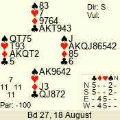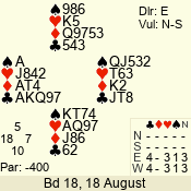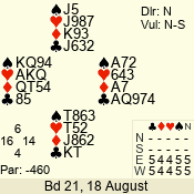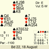 | 3 NT | E | +1 | -430 | 2 | 09 - 04 | 7 | 1 |
