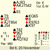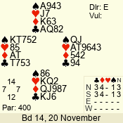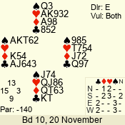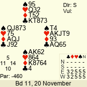 | 3 NT | E | +2 | -460 | 6 | 12 - 12 | 1 | 12 |