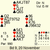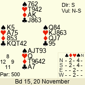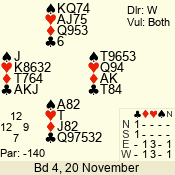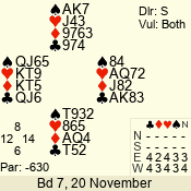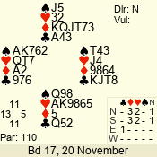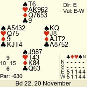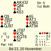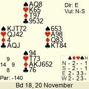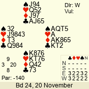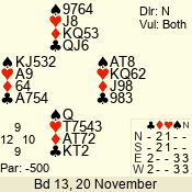 | 3 NT | W | +1 | -630 | 3 | 11 - 05 | 7 | 11 |
