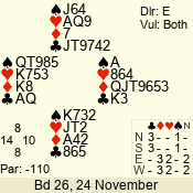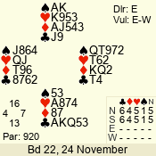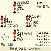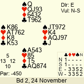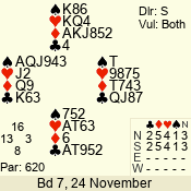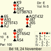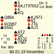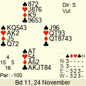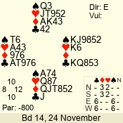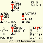 | 3 NT | S | +1 | 430 | 3 | 15 - 01 | 9 | 7 |