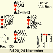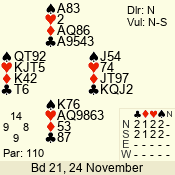 | 3 NT | N | +1 | 430 | 7 | 18 - 11 | 11 | 1 |