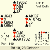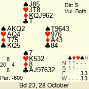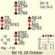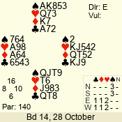 | 3 NT | E | +2 | -460 | 8 | 13 - 10 | 4 | 13 |