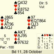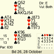| 3 NT | E | +1 | -630 | 6 | 11 - 12 | 13 | 11 |