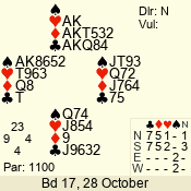 | 3 NT | E | +1 | -630 | J | 13 - 03 | 11 | 13 |