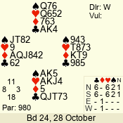 | 3 NT | S | +1 | 630 | 7 | 05 - 10 | 9 | 5 |