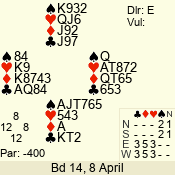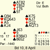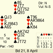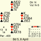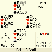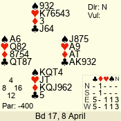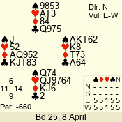 | 3 NT | W | +1 | -430 | 3 | 05 - 03 | 3 | 5 |