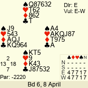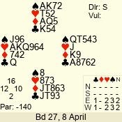 | 3 NT | S | -3 | -150 | 6 | 04 - 09 | 5 | 4 |