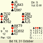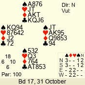 | 3 NT | W | +3 | -690 | A | 06 - 02 | 5 | 6 |