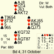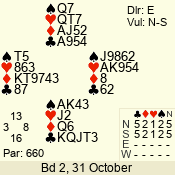 | 3 NT | W | +2 | -660 | T | 02 - 01 | 2 | 2 |
