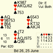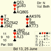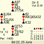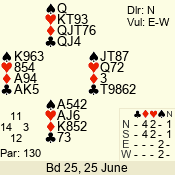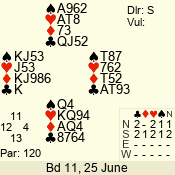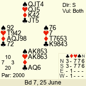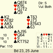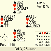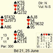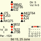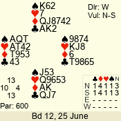 | 3 NT | S | +1 | 630 | 7 | 12 - 12 | 1 | 12 |
