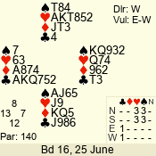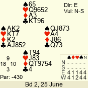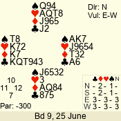 | 3 NT | W | +1 | -430 | 2 | 06 - 12 | 9 | 6 |