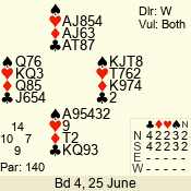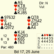 | 3 NT | N | +2 | 460 | Q | 04 - 08 | 11 | 4 |