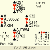 | 3 NT | W | +3 | -490 | 5 | 12 - 11 | 2 | 12 |