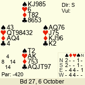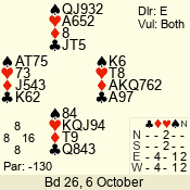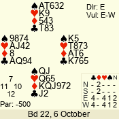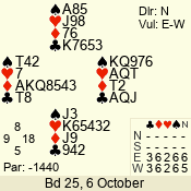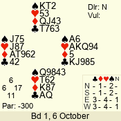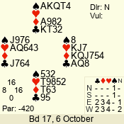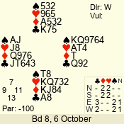 | Con | Dc | Res | Score | Ld | Pairs | Rd | Tbl | | 1 N | W | -1 | 100 | 5 | 04 - 06 | 8 | 4 |